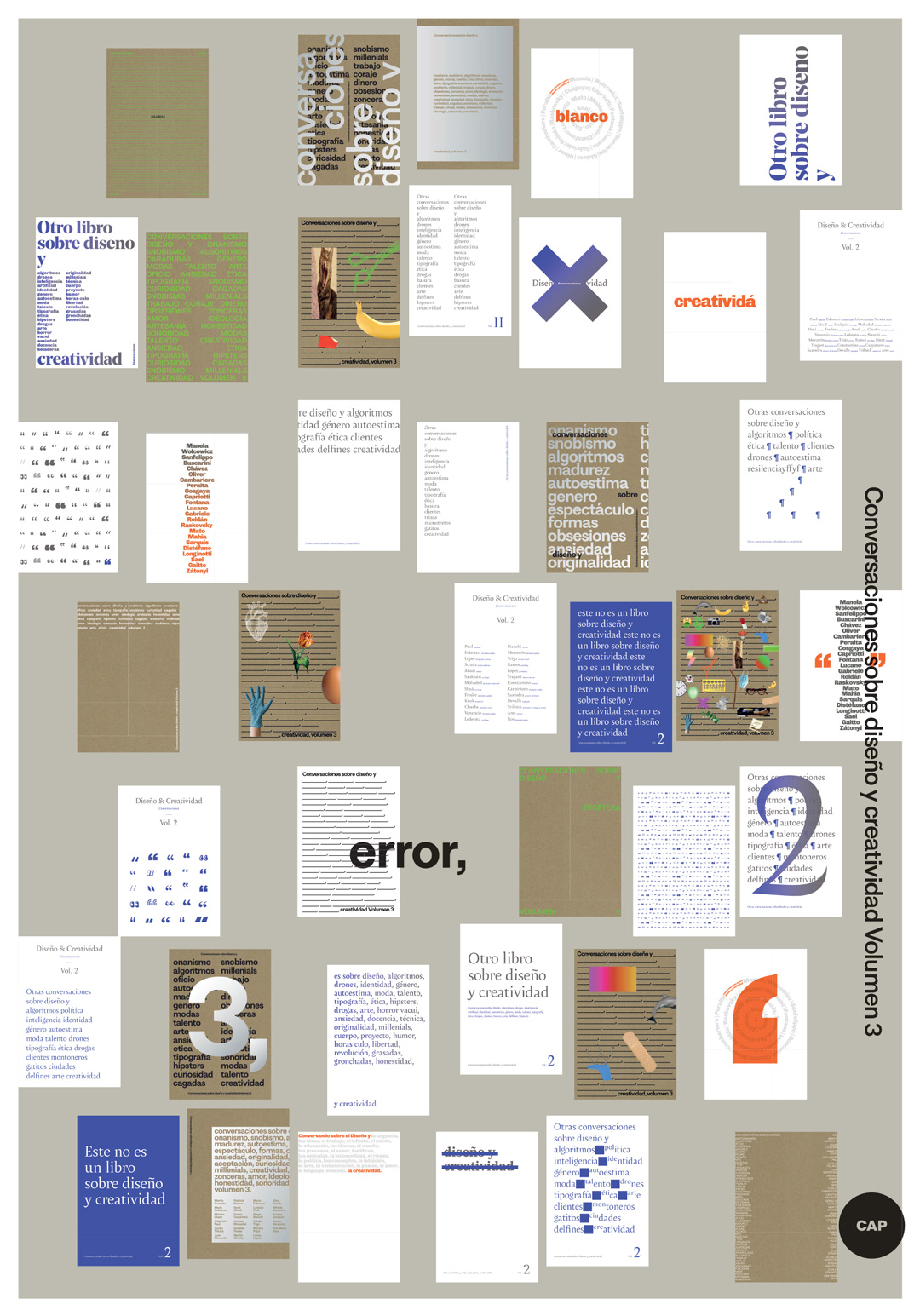 Los afiches exponen cómo cada persona convocada reinterpretó las palabras incluidas en la tapa del libro, empleando las mismas como disparadores para la expresión, la creación y la discusión. La convocatoria incluyó a diseñadores, ilustradores, artistas visuales, etc., lo que dio por resultado un conjunto heterogéneo –en términos visuales– de piezas pero con un propósito en común: expandir la conversación sobre el diseño, la creatividad y sus dimensiones por fuera de la intimidad de la lectura del libro.